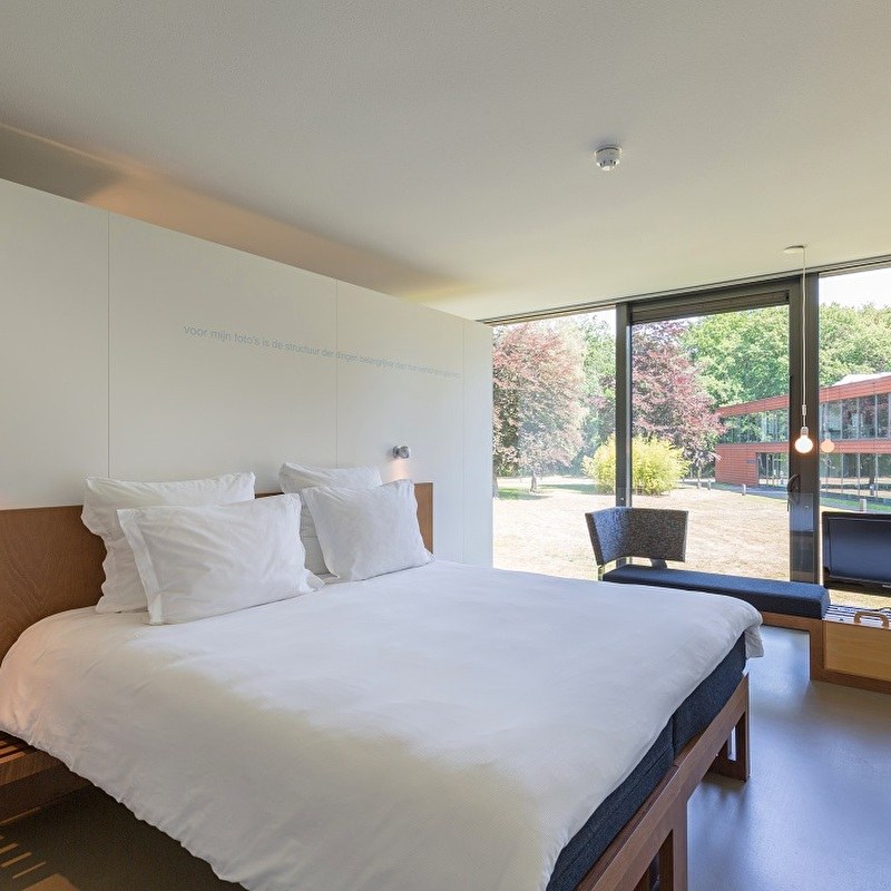 Wakker worden met uitzicht op de Utrechtse bossen: vanuit uw hotelkamer wandelt of fietst u zo het privébos van Landgoed de Horst in. Ook op uw kamer gaat u op avontuur: ontdekt een spannend verhaal van beeldende kunst, fotografie, poëzie of muziek. Buiten uw kamer leeft het bos op in bonte herfstkleuren.